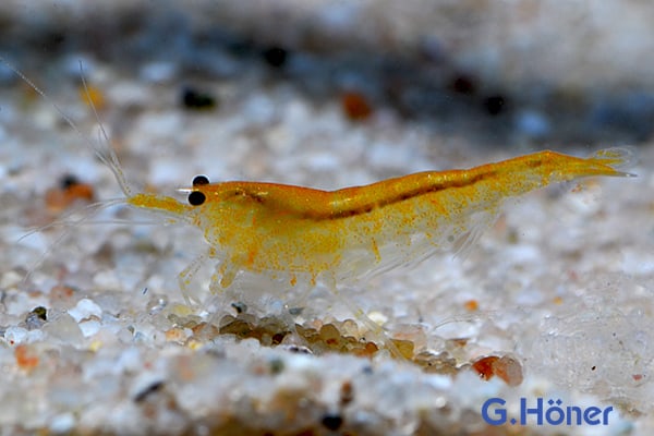 Neocaridina davidi gehört zum Tierreich und ist ein Gliederfüßer aus der Klasse Malacostraca. Die Art steht in der Ordnung der Zehnfüßer und zählt zur Familie der Atyidae. Die Yellow Fire Garnele ist in der Aquaristik sehr beliebt. Kleine, kräftige Tiere zeigen meist eine Körperlänge von etwa 2,5 cm. Ihr Panzer glänzt in leuchtendem Gelb, das sich in einigen Fällen mit roten Akzenten durchsetzt. Die Scheren und Beine wirken robust, wenngleich sie im Vergleich zu anderen Garnelen klein sind. Es gibt Unterschiede in der Farbe, die von genetischen Varianten herrühren. Wissenschaftler verweisen auf diese Varianten als Resultat selektiver Zucht, sie weisen aber auch auf Unsicherheiten in der genauen Bestimmung hin.