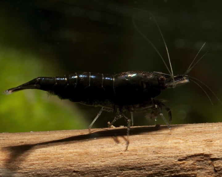 Neocaridina davidii gehört zur Familie der Atyidae und ist ein Vertreter der Garnelen aus dem Orden der Zehnfußkrebse. Die Black Sakura Garnele zeigt einen glänzenden, dunklen Panzer, der oft mit rosafarbenen Akzenten durchsetzt ist. Die Körperlänge liegt im Schnitt bei 2 Zentimetern. Die Schale ist hart und dient als Schutz. Ihre kleinen Fühler und die gut gearbeiteten Beinpaare sind typisch für diese Art.
