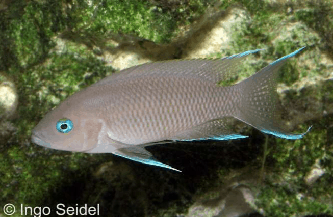 Neolamprologus marunguensis – Blauaugen-Feenbarsch besticht durch strahlend blaue Augen, feine Körperkonturen und ein elegantes Schwimmverhalten. Der lebhafte Fisch zeigt ausgeprägte Revierhaltung sowie soziale Interaktionen und benötigt reichlich Versteckmöglichkeiten. Es sind keine besonderen Merkmale bekannt.