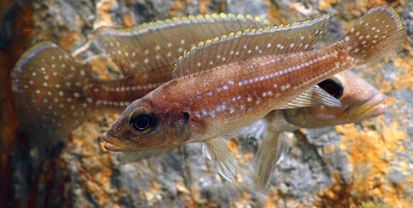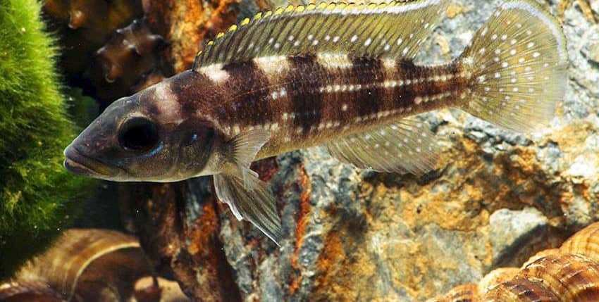 Neolamprologus tetracanthus ist ein kleiner Cichlide, der im Tanganjikasee vorkommt. Sein wissenschaftlicher Name ist Neolamprologus tetracanthus. Die Art erreicht im Schnitt eine Länge von etwa 10 Zentimetern. Der Körper zeigt schillernde Farben mit dunklen und gelben Tönen, während die spitz zulaufenden Flossen einen feinen Rand haben. Im natürlichen Lebensraum lebt er in felsigen Küstenbereichen und nutzt enge Felsspalten als Versteck. Diese Anpassung hilft ihm, Raubtieren zu entgehen und Nahrung zu sichern. Neolamprologus tetracanthus zeigt ein ausgeprägtes territoriales Verhalten und eine Sozialstruktur, bei der die Art in kleinen Gruppen agiert. Im natürlichen Lebensraum herrscht eine durchschnittliche Wassertemperatur von 25 Grad Celsius und ein pH-Wert von rund 8. Für ein artgerechtes Aquarium sind ähnliche Bedingungen wichtig, um die natürlichen Ökologieprozesse zu erhalten. Einige Angaben variieren in den Quellen, weshalb Durchschnittswerte zur besseren Vergleichbarkeit genutzt werden.