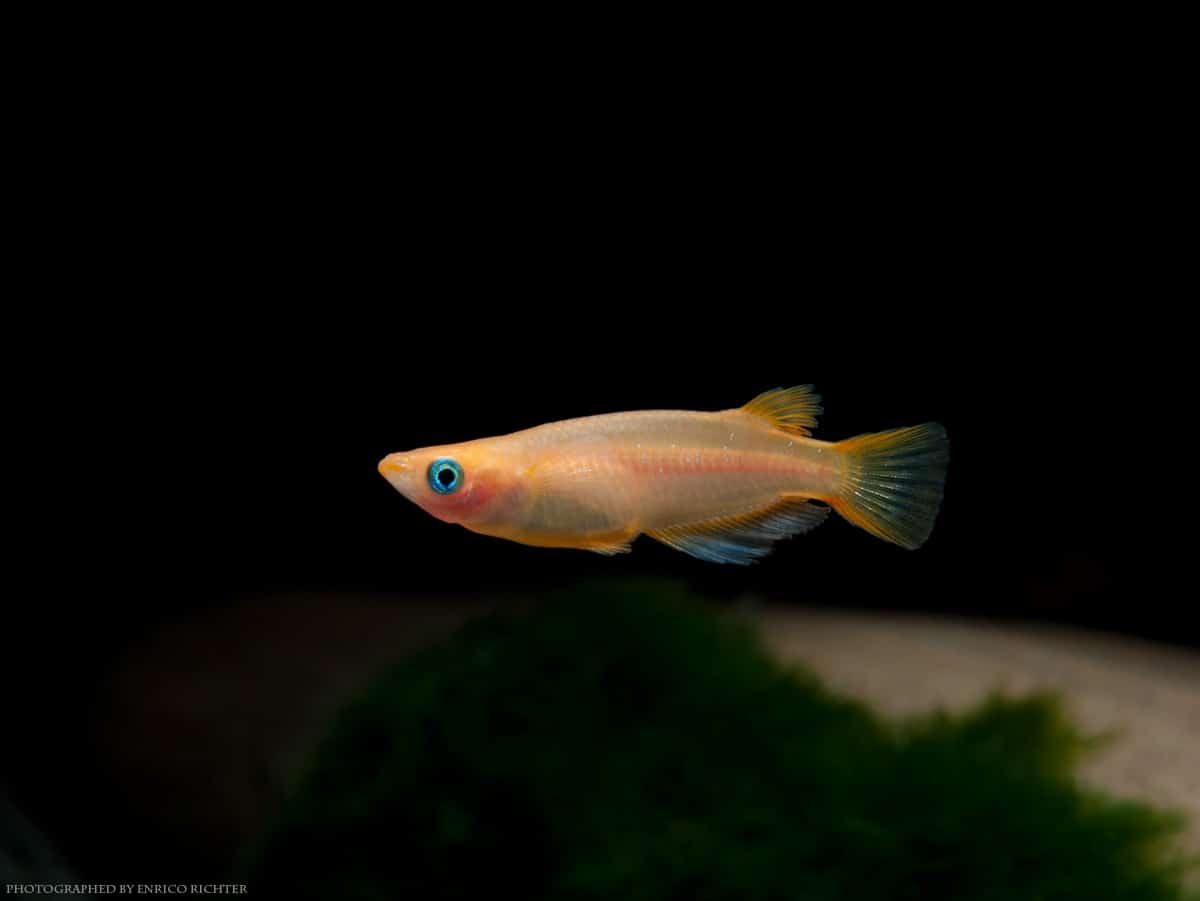 Männchen: Oft schlanker als die Weibchen und mit intensiver leuchtenden Färbung, insbesondere an der Analflosse, an der häufig ein rötlich-orangefarbener Fleck erkennbar ist.