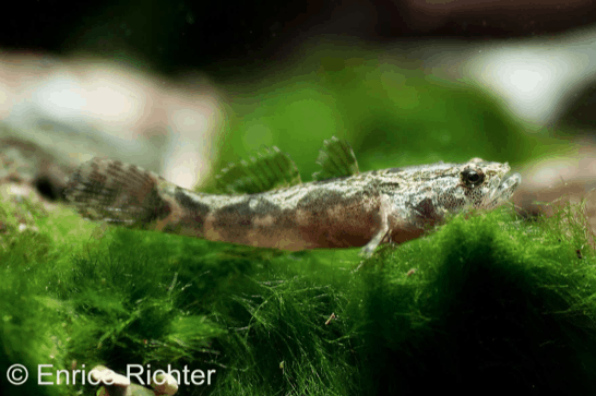 Oxyeleotris marmorata – Marmorgrundel überzeugt durch ein marmoriertes Muster und auffallende Tarnung. Der Fisch zeigt ein scheues, zurückhaltendes Verhalten und sucht aktiv Verstecke im Aquarium. Eine naturnahe Gestaltung mit Rückzugsmöglichkeiten wird empfohlen. Es sind keine besonderen Merkmale bekannt.