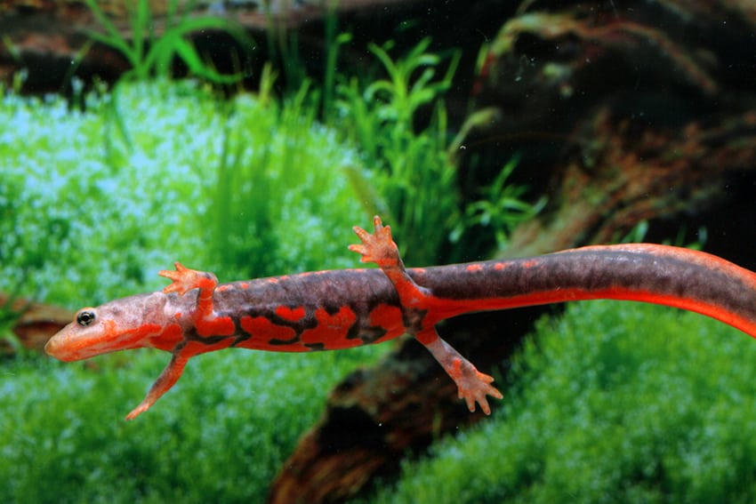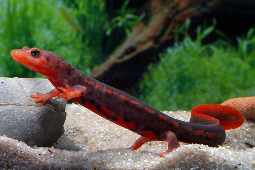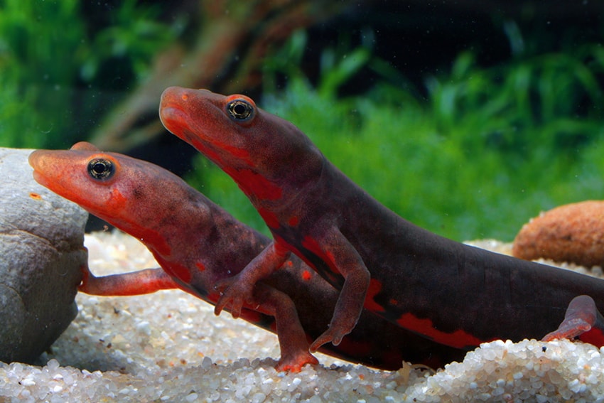 Pachytriton labiatum – Kleiner Kurzfußmolch lebt in klaren, sauerstoffreichen Gewässern, wie sie in den Bergbächen und Flussläufen Südostasiens sowie in ausgewiesenen, bewaldeten Feuchtgebieten vorkommen. Typisch für seinen natürlichen Lebensraum sind Gewässer mit moderat fließendem Wasser, einem neutralen bis leicht sauren pH-Wert und kühlen bis gemäßigten Temperaturen, die häufig durch eine dichte, natürliche Ufervegetation geschützt und geprägt sind. Diese Umgebung bietet nicht nur optimale Bedingungen für Atmung und Fortpflanzung, sondern auch reichlich Versteckmöglichkeiten und Nahrungsquellen, wodurch der Kleine Kurzfußmolch in allen Lebensstadien bestens versorgt ist.