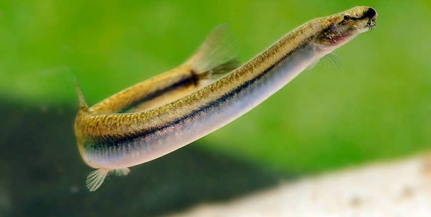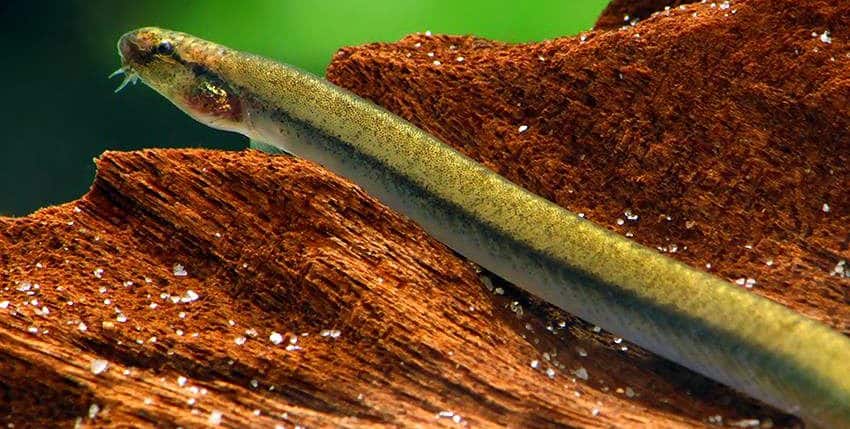 Pangio anguillaris zeigt eine schlangenartige, schlanke Körperform mit feinen, dezenten Markierungen, die als natürliche Tarnung dienen. Ihr ruhiges, geselliges Verhalten sowie der Anspruch an behutsame, artgerechte Haltung machen sie zu einem reizvollen Zierfisch.