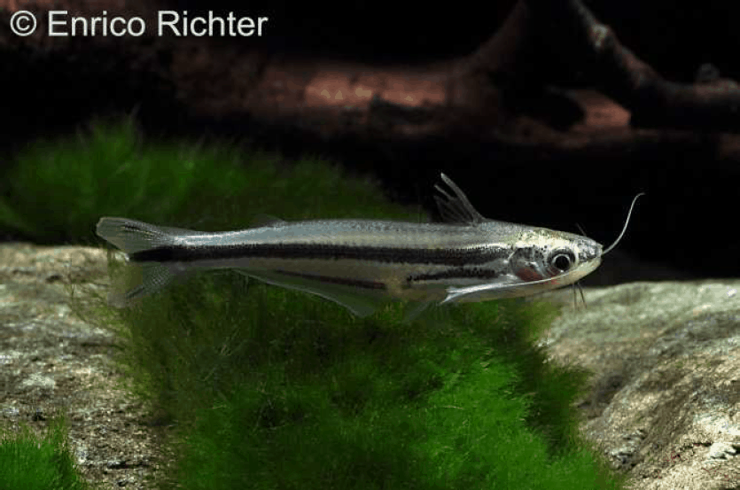 Pareutropius buffei Schwalbenschanz-Glaswels beeindruckt mit schimmernden, fast transluzenten Schuppen und feinen Querstreifen, die ihm eine elegante Glasoptik verleihen. Sein aktives Schwarmverhalten sowie eine freundliche, sanfte Interaktion fordern eine behutsame, gemeinschaftsorientierte Haltung.
