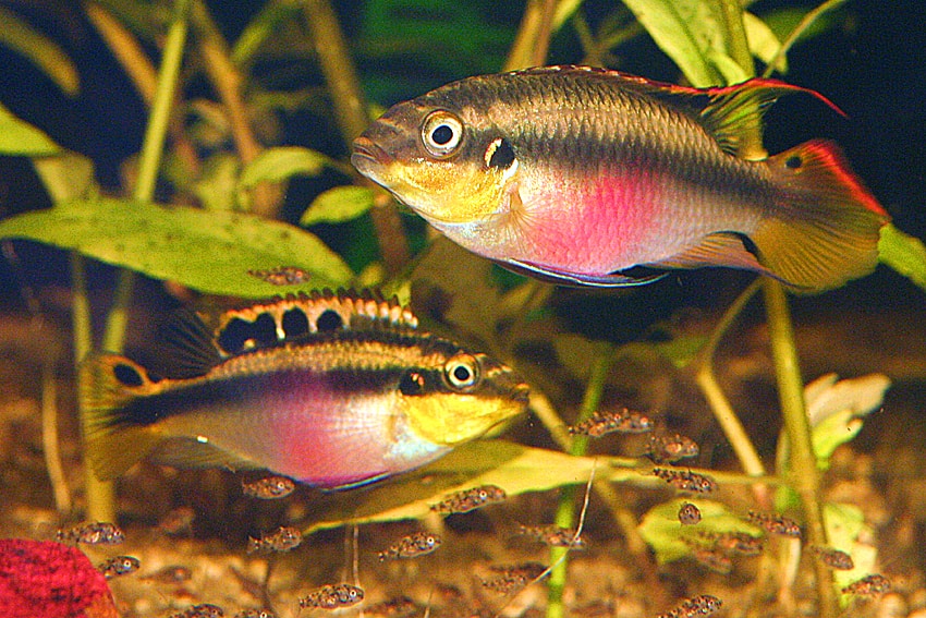 Die Gattung Pelvicachromis verlangt für eine erfolgreiche Fortpflanzung ein gut strukturiertes Aquarium mit reichlich Versteckmöglichkeiten, stabilen Wasserwerten und Temperaturen um 24–28°C, was sowohl den Paarungsritualen als auch der Aufzucht der Jungtiere zugutekommt; in der Laichphase zeigen sich ausgeprägte Balzverhalten und territoriales Agieren, wobei die Männchen durch farbliche Akzente und rituelle Gesten die Weibchen anlocken und zusammen mit diesen ein Laichloch in weicher Substratunterlage vorbereiten, in dem die Eier abgelegt und von beiden Elternteilen behütet werden – die Inkubationszeit beträgt dabei ca. 3 bis 5 Tage; nach dem Schlüpfen ernähren sich die Jungtiere zunächst von ihrem Dottersack, bevor sie mit fein zerkleinertem Futter eingeführt werden, während die elterliche Fürsorge bis zur vollständigen Schwimm- und Nahrungsaufnahme erhalten bleibt; diese Zuchtbedingungen, das intensive Paarungsverhalten und die engagierte Nachwuchspflege treffen auf einen Zierfisch, der als Pelvicachromis pulcher – Purpurprachtbuntbarsch – in Aquarien besiedelt wird.