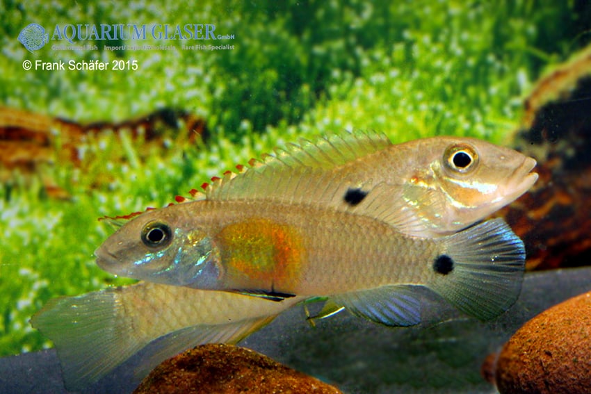 Pelvicachromis signatus gehört zur Familie der Buntbarsche und ist ein kleiner Süßwasserfisch. Sein durchschnittlicher Körper misst ca. 9 cm, er zeigt einen kräftigen, roten Bauch mit gelben Akzenten an den Seiten. Die Schuppen wirken glatt und gleichmäßig, was auf einen gesunden Organismus hindeutet. Dieser Fisch lebt in langsam fließenden Flussabschnitten mit dichtem Pflanzenwuchs und sandigem Grund. Er passt sich gut an schwankende Wasserbedingungen an, was für sein Überleben in variablen Habitaten wichtig ist. Männchen verteidigen ihr Revier und betreuen den Nachwuchs, während sich Weibchen um die Eiablage kümmern. Im Aquarium gelingen Haltung und Zucht am besten bei ca. 26 °C, weichem, leicht sauerem Wasser und reichlich Versteckmöglichkeiten. Angaben variieren teilweise, was man bei den Quellen berücksichtigen sollte.