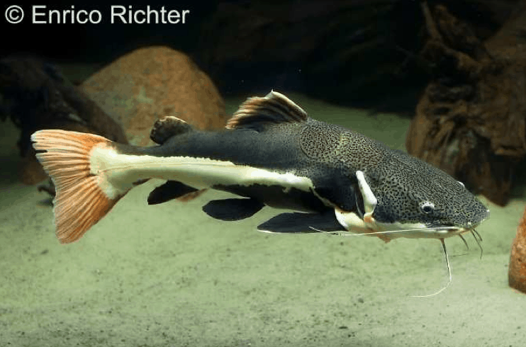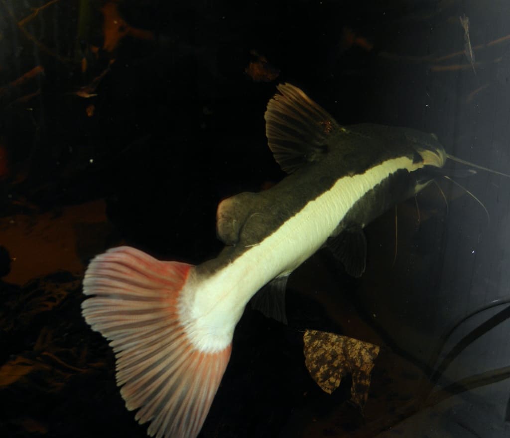 Phractocephalus hemioliopterus Rotflossen-Antennenwels besticht durch rote Flossen und lange Barteln, die an Antennen erinnern. Sein ruhiges, exploratives Verhalten und elegante Linien machen ihn zum besonderen Exemplar. Es sind keine besonderen Merkmale bekannt
