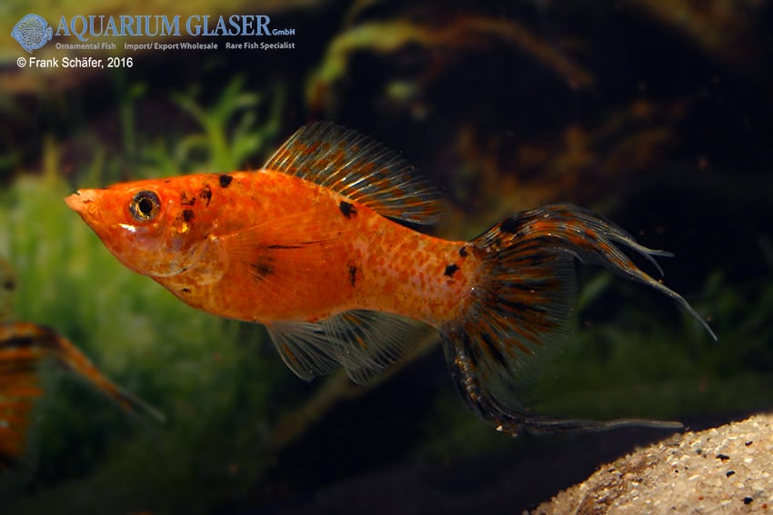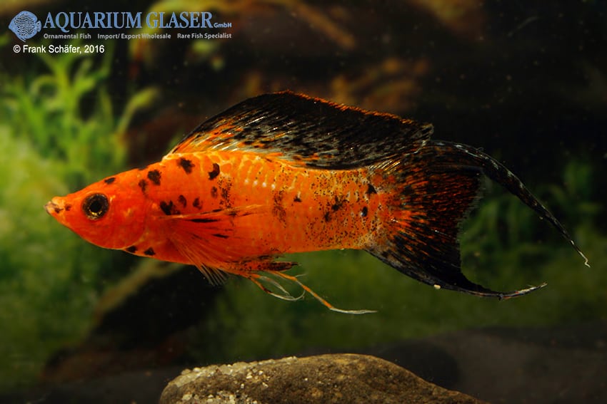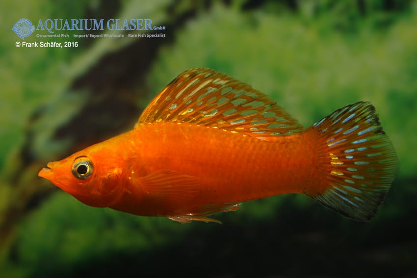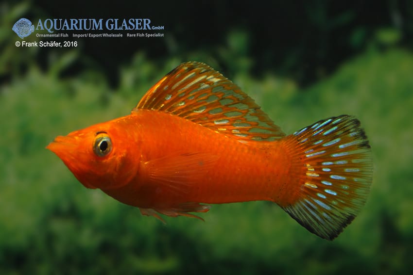 Poecilia velifera, der Segelkärpfling, beeindruckt mit seinem stromlinienförmigen Körperbau und lebhaftem Schwarmverhalten. Elegante, geschwungene Rückenflossen und ein dynamischer Schwimmstil prägen sein Erscheinungsbild. Zudem ist er pflegeleicht und anpassungsfähig im Gemeinschaftsaquarium. Es sind keine besonderen Merkmale bekannt.