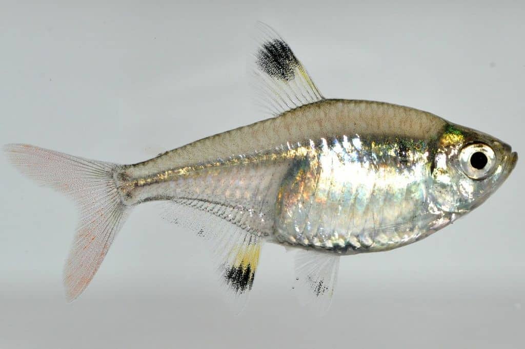 Pristella maxillaris – Sternflecksalmler besticht durch leuchtende, sternförmige Flecken und einen schlanken Körperbau. Sein reges Schwarmverhalten und aktive Artgenossenschaft machen ihn zu einem pflegeleichten, faszinierenden Zierfisch.
