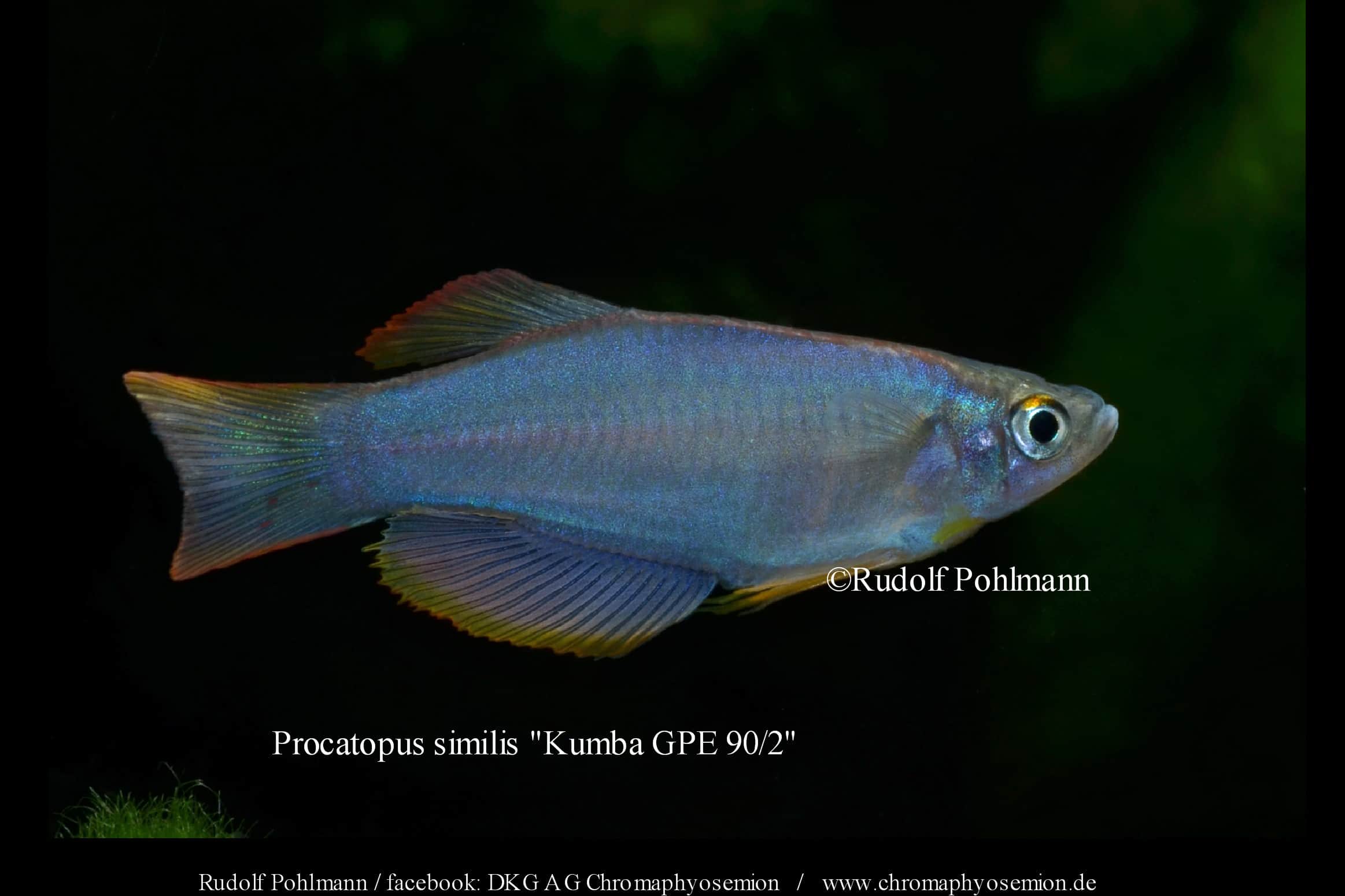 Procatopus similis, wissenschaftlich so benannt, gehört zur Ordnung der Cyprinodontiformes und zur Familie Poeciliidae. Der Fisch hat einen schlanken Körper mit einer silbern-grauen Grundfärbung und markanten leuchtenden Augenflecken. Seine durchschnittliche Körperlänge liegt bei ca. 5 cm; auch Flossen und Schwanz zeigen eine leichte Transparenz. In seinem natürlichen Lebensraum in Westafrika lebt er in flachen, warmen Gewässern mit Temperaturen von 24 bis 28 Grad und einem pH-Bereich zwischen 6,5 und 7,5. Er zeigt ein aktives Verhalten, verbringt viel Zeit im dichten Pflanzenwuchs und sucht dort Schutz vor Fressfeinden. Zudem passt er sein Laichverhalten an wechselnde Umweltbedingungen an. Im Aquarium sollten stabile Wasserwerte, reichlich Pflanzen und wenig starke Strömungen gewährleistet werden, um das natürliche Habitat bestmöglich zu simulieren. Einige Quellen widersprechen in Details zur Taxonomie und Ökologie, sodass weitere Studien nützlich wären.