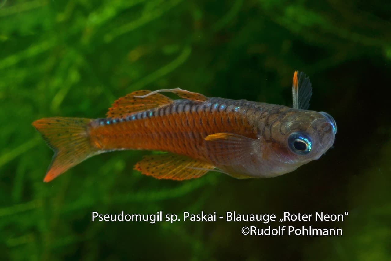 Pseudomugil luminatus gehört zur Familie Pseudomugilidae und wird auch als Blauauge Roter Neon bezeichnet. Der kleine Fisch erreicht im Schnitt etwa 3,5 cm Länge. Sein Körper zeigt leuchtend rote Akzente, während die Augen durch ein blaues Schimmern auffallen. Die Flossen weisen einen dezenten Glanz auf, der im Licht variabel erscheint. Er lebt in warmen, flachen Gewässern tropischer Regionen. Dort teilt er das Wasser mit zahlreichen anderen Kleinfischen und Insektenlarven. Im natürlichen Habitat herrschen Temperaturen von ca. 26 °C und ein pH-Wert um 7.0. Der Art ist bekannt, in kleinen Schulen zu schwimmen. Dabei ist seine schnelle Schwimmweise eine Anpassung zur Vermeidung von Fressfeinden. Ein weiterer Aspekt ist sein Tagaktivitätsrhythmus, der ihn zu einem aktiven Jäger kleiner Beutetiere macht. Im Aquarium gedeiht er bei gleichen Wasserwerten, in Gruppen von mindestens zehn Tieren. Diese Haltung fördert sein soziales Verhalten und mindert Stress, was sich positiv auf seine Gesundheit auswirkt. Quellen weisen teils unterschiedliche Angaben auf, weshalb genaue Messwerte als Durchschnittswerte betrachtet werden.