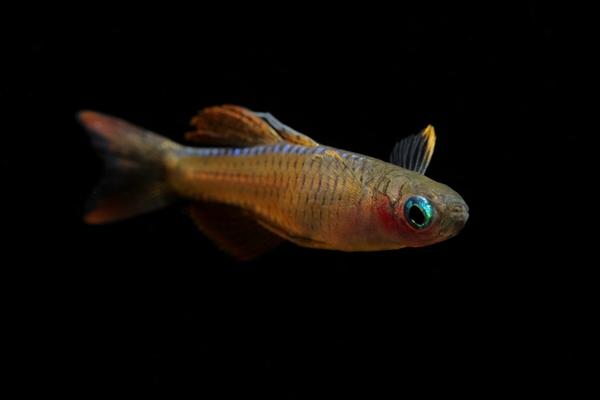 Pseudomugil luminatus – Blauauge Roter Neon fasziniert durch leuchtende Rot- und Blautöne sowie filigrane, funkelnde Augen. Der aktive Zierfisch lebt in kleinen Schwärmen, zeigt dynamische Schwimmbewegungen und ist ein harmonischer Bewohner jedes Gemeinschaftsbeckens.