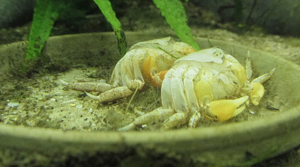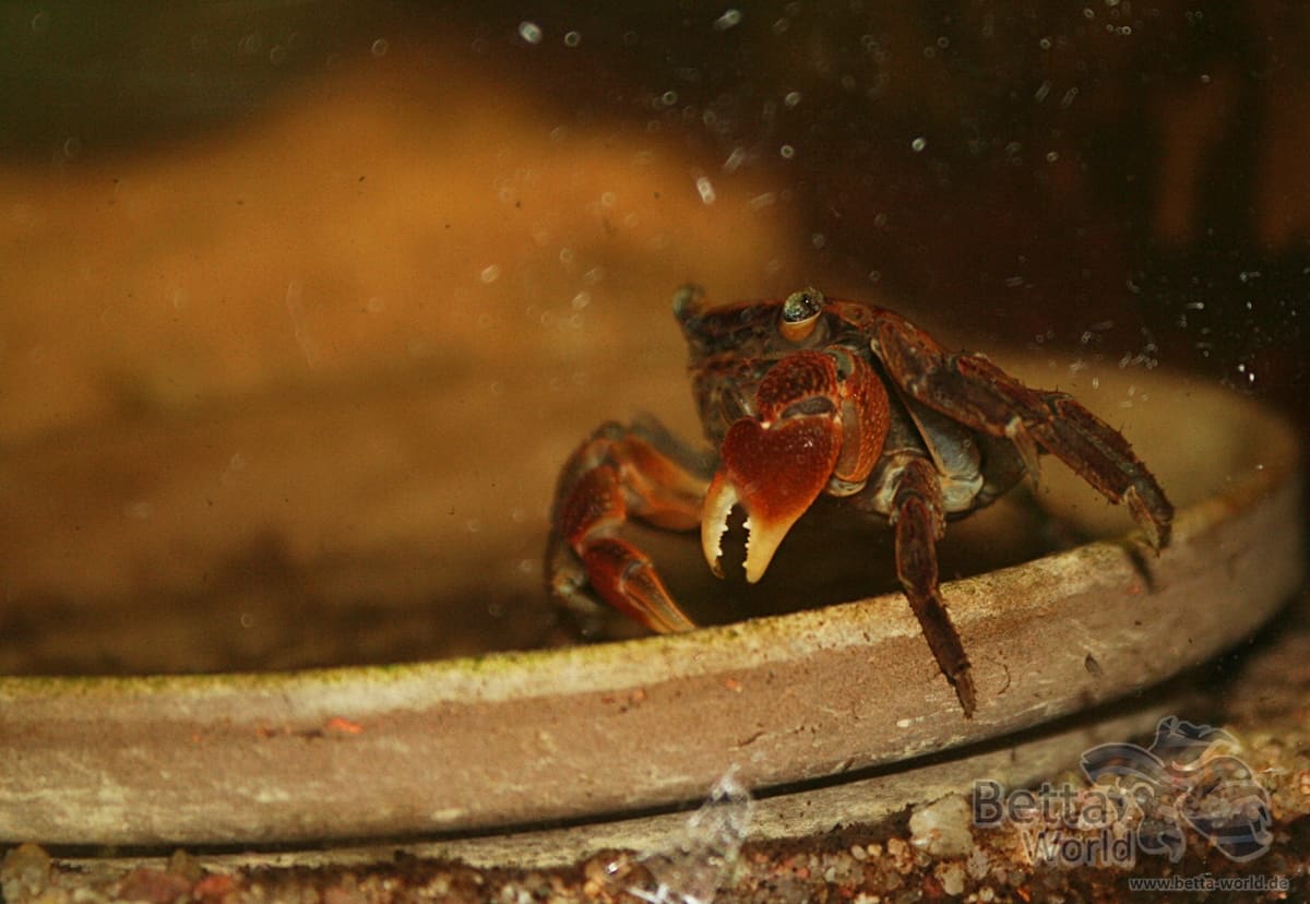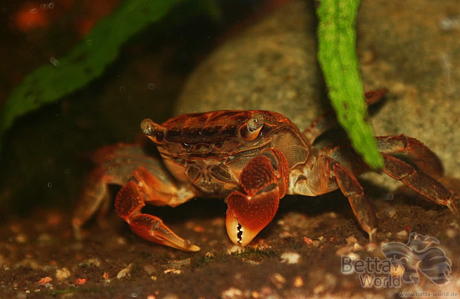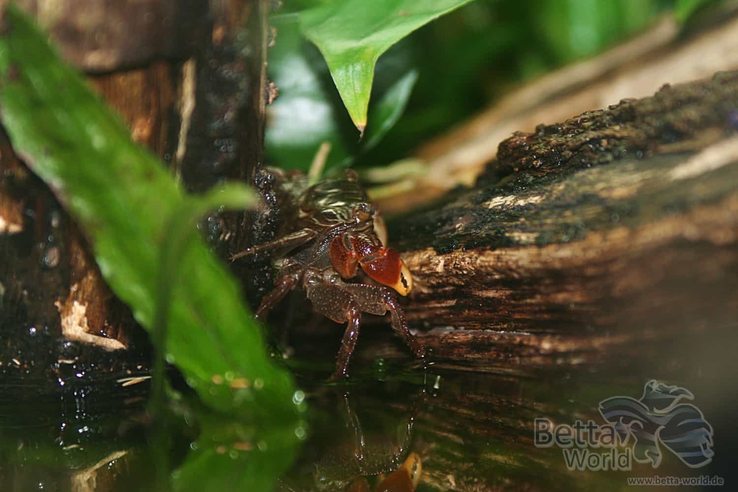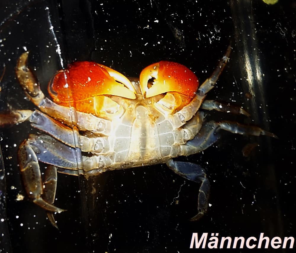 Die Art legt Eier ab, die der Träger an seinem Körper festhält, bis sie schlüpfen. Das Eiablagesystem ähnelt dem vieler Krebstiere, und die Larven durchlaufen mehrere Entwicklungsstadien. Hierbei spielen Wasserbedingungen eine große Rolle, da eine stabile Wassertemperatur um die 26 °C sowie ein pH-Wert nahe 8 essenziell sind. Das Substrat sollte aus feinem Sand und lockerer Erde bestehen, um den natürlichen Mangrovenboden abzubilden. Neben Futter wie Detritus und Algen werden kleine tierische Reste empfohlen, um den Ernährungsbedarf zu decken. Wie bei anderen Krebstieren erfolgt das Häutungsverhalten in mehreren Phasen. Eine Häutung bezeichnet den Prozess, in dem das Tier sein altes Exoskelett abwirft, um zu wachsen. Diese Häutungen finden in regelmäßigen Abständen statt und stellen für das Tier eine Phase erhöhter Stressanfälligkeit dar. Die Wachstumsstadien beginnen bei sehr kleinen Jungtieren, die im Laufe mehrerer Instars an Größe und Intensität der Färbung zunehmen. Bei optimalen Haltungsbedingungen führt dies zu einer schnellen Entwicklung, während suboptimale Parameter das Wachstum hemmen können. Im Aquarium zeigt das Tier typische Verhaltensweisen wie Grasen an Algen, aktives Klettern an Dekorationselementen und das Aufsuchen von Verstecken, wenn es gestresst ist. Diese Aktivitäten spiegeln Anpassungen an das naturnahe Mangrovenökosystem wider, wo Bewegungssünd und Rückzug gleichermaßen wichtig sind. Die enge Verknüpfung von Fortpflanzung, Häutung, Wachstum und alltäglichem Verhalten zeigt, wie empfindlich dieses Tier auf Umweltveränderungen reagiert. Somit wird deutlich, dass eine artgerechte Haltung, die natürliche Wasserparameter und Substrate beibehält, für die erfolgreiche Zucht und das Wohlbefinden essenziell ist.