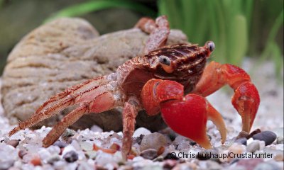 Dieser Krebs frisst im Aquarium täglich kleinen Anteil an Futter. Er erhält regelmäßig zusätzliche Nahrungsergänzungen wie Kalk, um seine Schale zu stärken. Es wird empfohlen, frisches Gemüse wie Gurken oder Karotten in kleinen Portionen zu geben. Die natürliche Fütterung erfolgt meist am Boden, da er nach Kleinigkeiten sucht. Stark fetthaltiges Futter sollte in keinem Fall im Aquarium angeboten werden.
