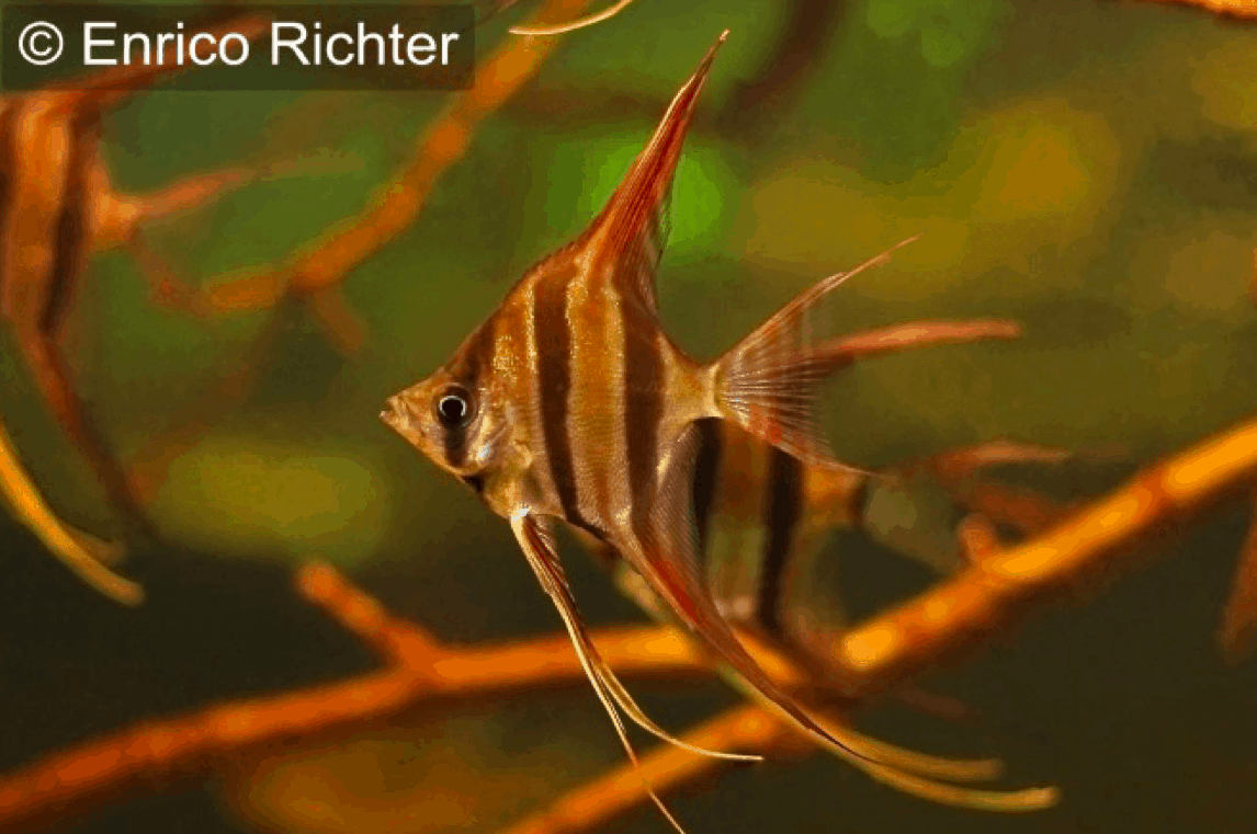 Beim Pterophyllum altum beeindrucken die langgezogenen, filigranen Flossen und der kunstvoll geschwungene, hohe Körperbau. Sein sensibles, sozial ausgeglichenes Verhalten und der besondere Pflegeanspruch heben ihn als außergewöhnlichen Zierfisch hervor.