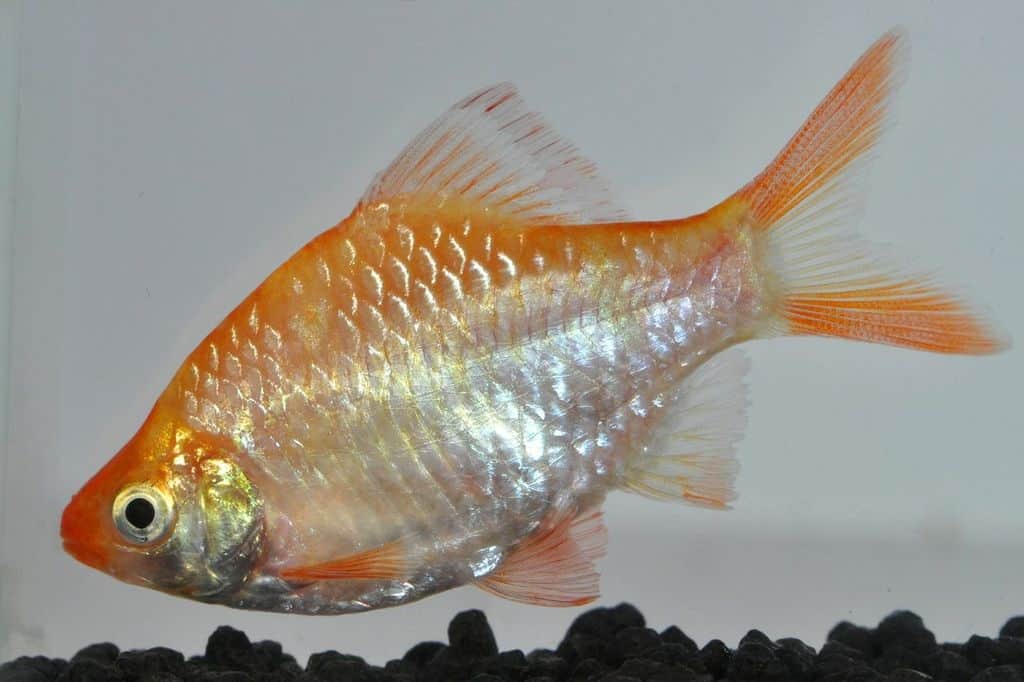 Systomus anchisporus – Sumatrabarbe gold besticht durch ihr schimmernd goldenes Schuppenkleid und elegant geschwungene Flossen. Der lebhafte Schwarmfisch zeigt ausgeprägtes Sozialverhalten und harmoniert in artgenössigen Gruppen. Es sind keine besonderen Merkmale bekannt.