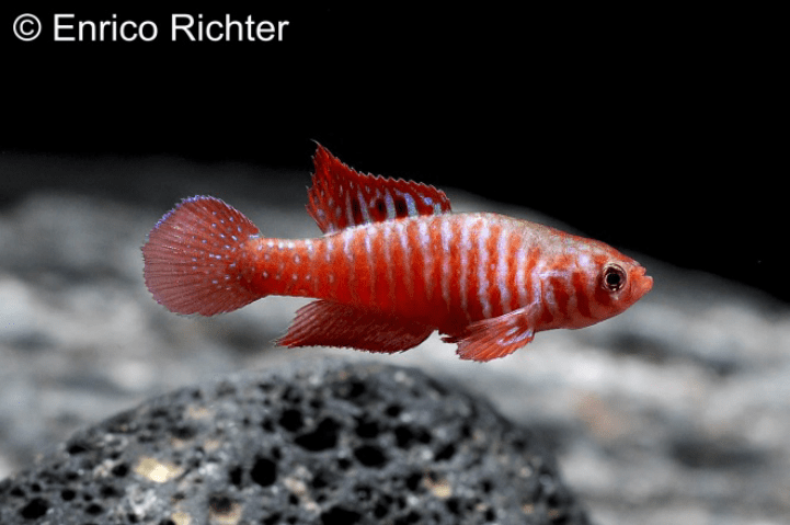 Als karnivore Art benötigt dieses Tier eine proteinreiche Ernährung, da reine Pflanzenkost zu Mangelerscheinungen führen würde, während eine ausschließliche Fleischkost ohne geeignete Futterzusätze die Versorgung mit Vitaminen und Ballaststoffen beeinträchtigen kann; in der Natur werden vor allem kleine Krebstiere wie Cyclops sowie Insektenlarven gefressen. Im Aquarium sollte das Hauptfutter zu etwa 70–80 % aus hochwertigem, fleischhaltigem Trockenfutter bestehen, ergänzt durch abwechslungsreiche Gaben von Lebend- oder Frostfutter wie Artemia und rote Mückenlarven, die 2- bis 3-mal pro Woche angeboten werden können. Die Fütterung erfolgt idealerweise 2- bis 3-mal täglich in Portionen, die innerhalb von 3 Minuten vollständig aufgenommen werden, wobei Futterreste stets zeitnah zu entfernen sind, da diese Art zu Überfressen neigt und daher kontrollierte Mengen besonders wichtig sind.