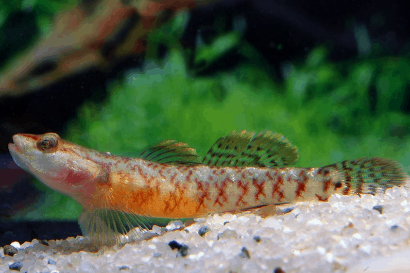 Rhinogobius zhoui – Flammengrundel besticht durch auffallend leuchtende Farbakzente, eine schlanke, muskulöse Körperform und ausgeprägtes Revierverhalten. Er zeigt lebhafte Aktivitäten, harmoniert in der Gemeinschaft und profitiert von abwechslungsreichen Versteckmöglichkeiten.