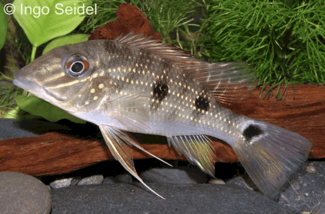 Satanoperca daemon besticht durch ein markantes Muster aus drei Flecken, einen schlanken Körperbau und ein harmonisches Sozialverhalten. Der aktive Fisch zeigt leicht territoriale Züge und gedeiht in artgerechter Gemeinschaftshaltung. Es sind keine besonderen Merkmale bekannt.
