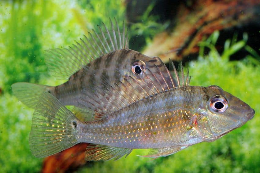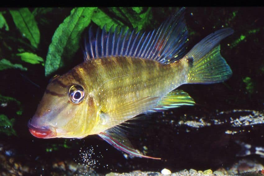 Diese Art ist ein typischer Omnivor, der sowohl tierische als auch pflanzliche Nahrung benötigt, da eine reine Pflanzenkost zu Mangelerscheinungen und eine ausschließliche Fleischkost zu Verdauungsproblemen führen würde; in der Natur werden unter anderem kleine Krebstiere und Insektenlarven aufgenommen, gelegentlich auch Algen oder Detritus. Im Aquarium sollte das Hauptfutter etwa 70–80 % der Tagesration ausmachen und aus hochwertigem Flocken- oder Granulatfutter für omnivore Cichliden bestehen. Ergänzend empfiehlt sich zwei- bis dreimal pro Woche die Gabe von Lebend- oder Frostfutter wie Artemia oder roten Mückenlarven sowie blanchiertem Gemüse, beispielsweise Zucchini oder Spinat, um die Ernährung abwechslungsreich zu gestalten. Die Fütterung erfolgt idealerweise zwei- bis dreimal täglich in Portionen, die innerhalb von drei Minuten vollständig aufgenommen werden, wobei Futterreste stets zeitnah zu entfernen sind, da diese Art zu Überfressen neigt und kontrollierte Mengen für die Gesunderhaltung unerlässlich sind.