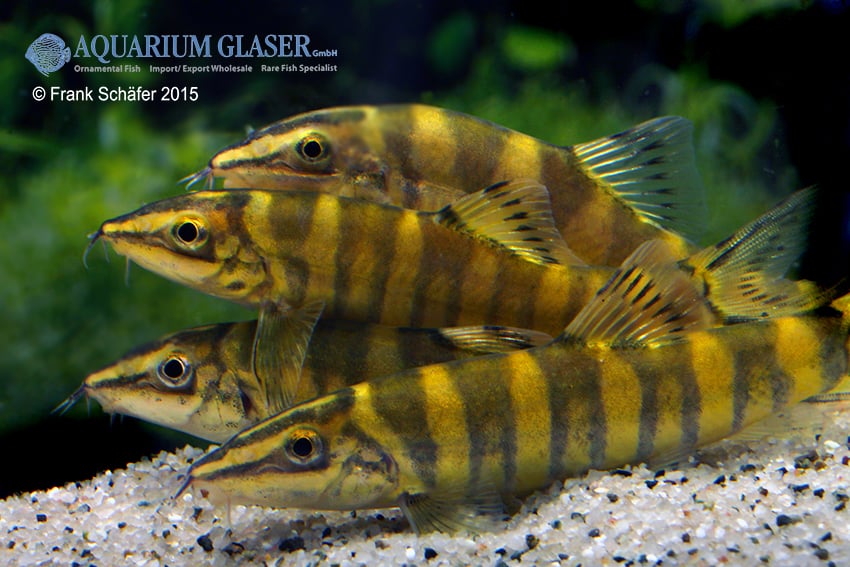 Sinibotia robusta, der Kansu-Prachtschmerle, besticht durch markante silbrig-grüne Streifen und eine kräftige Körperform. Der aktive Bodenbewohner zeigt interessantes Sozialverhalten und benötigt strukturierte Aquarienbereiche. Es sind keine besonderen Merkmale bekannt.