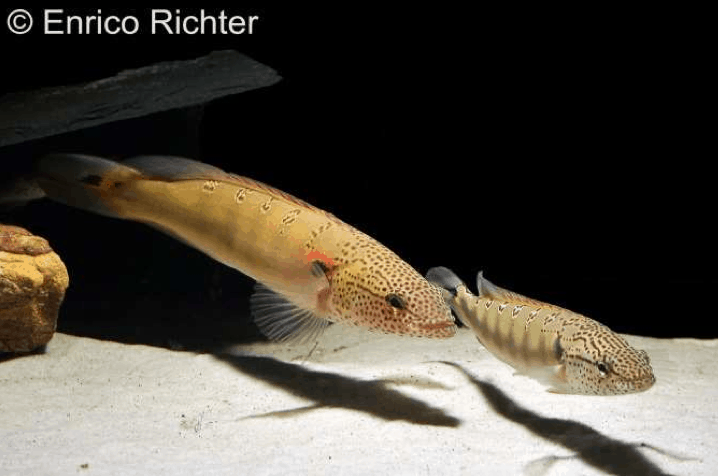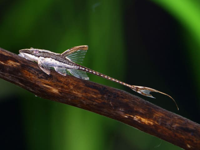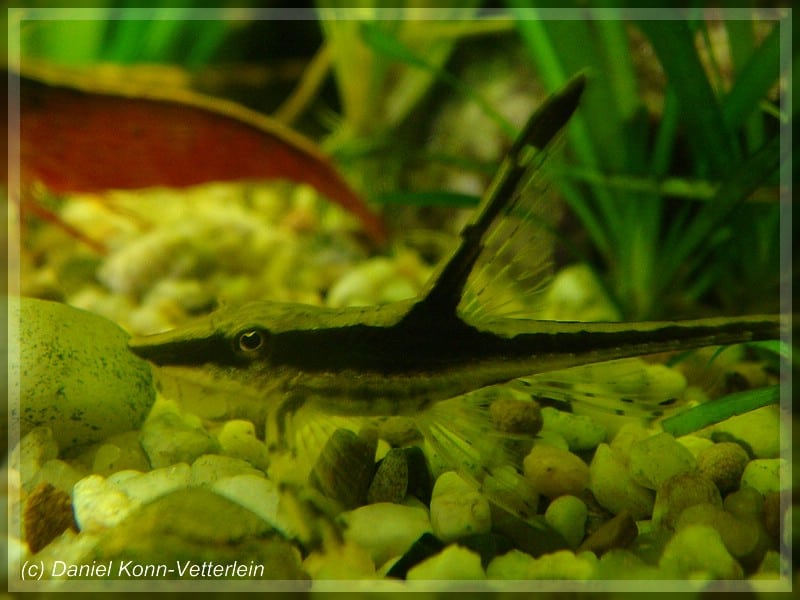 Sturisoma festivum besticht durch schlanken, gemusterten Körper und feine Barteln. Er schwimmt bodennah, agiert in kleinen Gruppen und zeigt ein harmonisches Sozialverhalten. Pflegeleicht und ruhig – ein besonderer Zierfisch. Es sind keine besonderen Merkmale bekannt