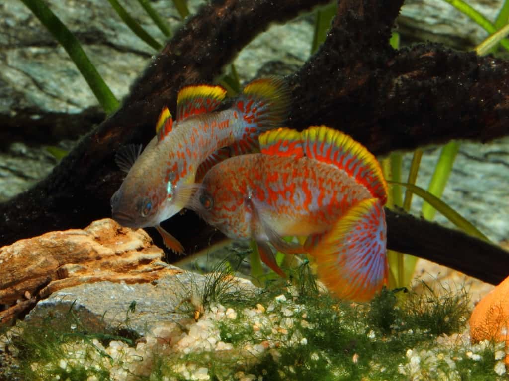 Tateurndina ocellicauda – Pastellgrundel lebt in tropischen, langsam fließenden Gewässern des Amazonasbeckens, wo sie in kleinen Nebenflüssen, Bachläufen und sumpfigen Abschnitten mit dichter Wasserpflanzenvegetation anzutreffen ist. In diesen Habitaten herrschen üblicherweise leicht saure bis neutrale pH-Werte, Temperaturen zwischen etwa 24°C und 28°C sowie weiche bis mittlere Wasserhärte, wodurch ein stabiles Mikroklima entsteht. Die umgebende, oft von Regenwäldern geprägte Landschaft bietet zahlreiche Versteck- und Laichmöglichkeiten durch reichlich Vorhandensein von Wurzeln, umgestürzten Baumstämmen und dichten Ufervegetationen, die nicht nur Schutz vor Fressfeinden, sondern auch ein vielfältiges Nahrungsangebot gewährleisten.