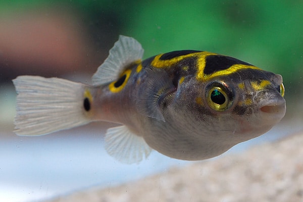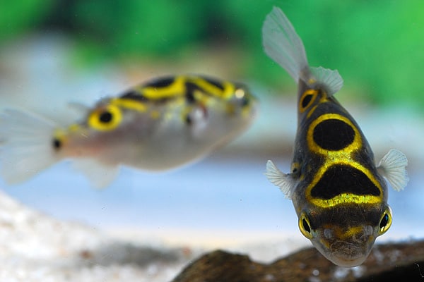 Dichotomyctere ocellatus Palembang-Kugelfisch beeindruckt mit markanten Augenflecken, kompakter, eleganter Körperform und lebhaftem, neugierigem Verhalten. Artgerechte Haltung und behutsame Pflege unterstreichen seine individuelle Musterung und seinen charmanten Auftritt im Aquarium.