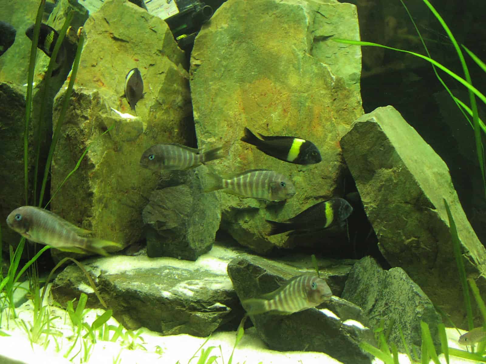 Tropheus duboisi – Weißpunkt-Brabantbarsch benötigt ein geräumiges Aquarium von mindestens 150–200 Litern, das reich strukturiert mit Felsformationen, Steinen und sicheren Rückzugsmöglichkeiten ausgestattet ist, um seinen natürlichen Lebensraum im Tanganyika-See nachzuempfinden. Die Wasserwerte sollten konstant im alkalischen Bereich gehalten werden, idealerweise mit einem pH-Wert von 8,0 bis 8,5, einer harten Wasserzusammensetzung und einer Temperatur zwischen 24 und 26 Grad Celsius; regelmäßige Wasserwechsel von etwa 20–30 % alle ein bis zwei Wochen sowie die regelmäßige Kontrolle der Wasserwerte sind essenziell, um Stress und Krankheiten vorzubeugen. Die abwechslungsreiche Fütterung umfasst hochwertige Flocken- und Tablettenfuttermittel, ergänzt durch naturbelassene Lebensmittel wie Gemüse, Spirulina, kleine Insekten und Lebendfutter wie Artemia, um den Nährstoffbedarf abzudecken und die natürliche Futtersuche zu fördern. Neben der richtigen Einrichtung und Fütterung ist es wichtig, den Bodengrund sowie Filter und technische Ausstattung regelmäßig zu reinigen und auf eine schonende Pflege zu achten, da Tropheus duboisi empfindlich auf plötzliche Veränderungen reagiert; somit trägt eine kontinuierliche Überwachung und Anpassung der Parameter entscheidend zur langfristigen Gesundheit und Stabilität im Aquarium bei.