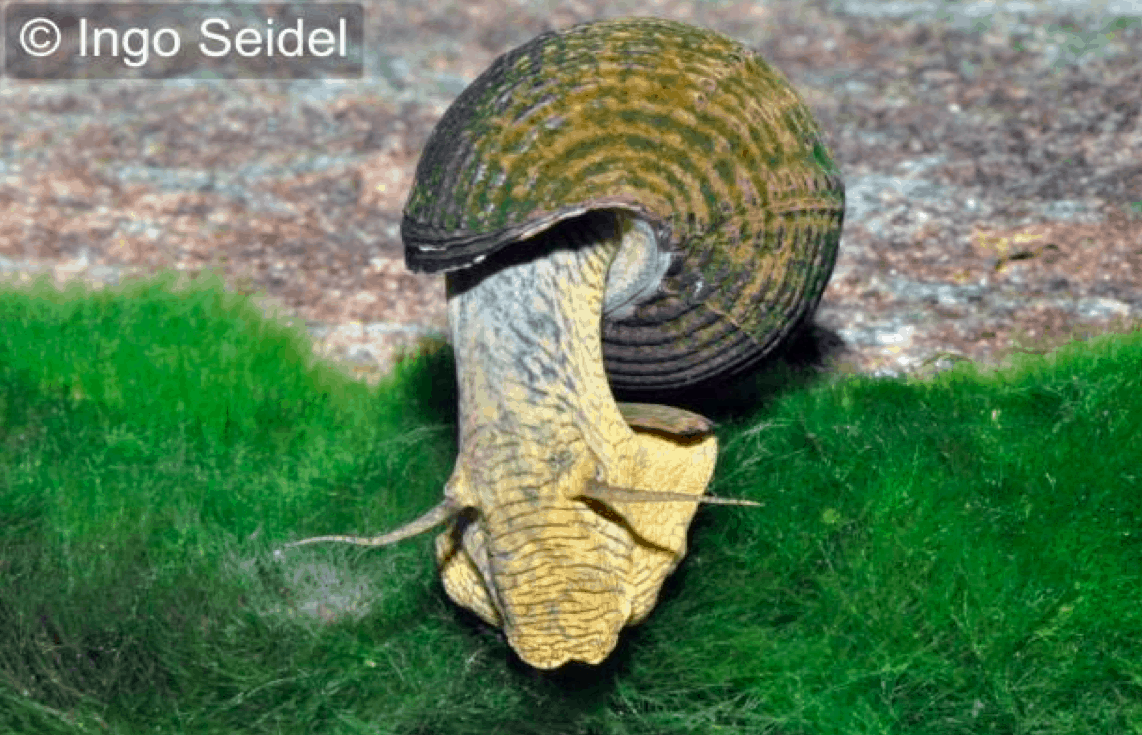 Tylomelania sp. – Gelbe Poso-Felsschnecke ist ein Süßwasserschnecke aus Indonesien. Das Tier zeigt ein besonderes Brutverhalten, indem es seine Jungen in kleinen Brutkammern behält. Diese Art bringt so ihre Nachkommen gut zur Welt und steigert deren Überlebenschancen. Ein weiteres Merkmal ist die anpassungsfähige Farbgebung der Schale, die sich an die lokalen Umweltbedingungen anpassen kann. Vergleichbare Eigenschaften finden sich bei verwandten Arten, wenngleich die genauen Zusammenhänge noch weiter erforscht werden müssen.