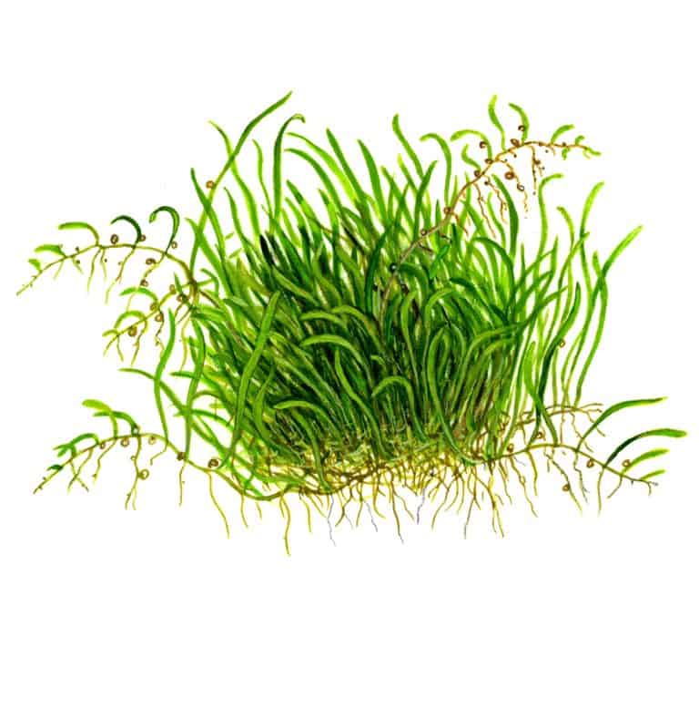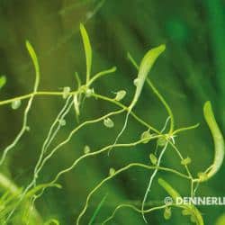 Die Pflanze besticht durch schmale, grasähnliche Blätter, die sich elegant im Wasser bewegen. Sie besitzt feine, filigrane Triebe und eine zarte Struktur. Charakteristisch sind die vielen kleinen Blasen, sogenannte Fallen, die kleine Wasserorganismen einsaugen. Dies ist ein typisches Merkmal der Gattung, das als Carnivorie-Mechanismus dient. Die Blätter sind in verschiedenen Grüntönen zu sehen, was sie in naturnahen Aquarien zu einem dekorativen Blickfang macht. Die leuchtenden Farben unterstreichen die natürliche Vitalität der Spezies.