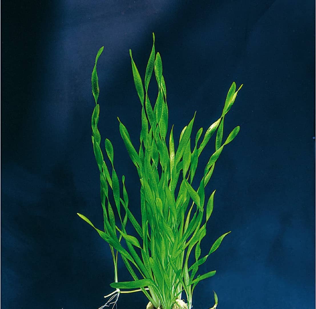 Die Pflanze besitzt langgestreckte, schraubenartig gewundene Blätter, die sich sanft im Wasser bewegen. Die Blätter erscheinen zart und biegsam, jedoch widerstandsfähig gegen mechanische Einflüsse. Ihr Erscheinungsbild wird durch den gleichmäßigen Blattansatz und die schmalen Blattrippen betont. Die Blattbasis weist oft Spiralmuster auf, die als typisches Merkmal zur Artbestimmung dienen. Die feinen Stängel führen zu mehreren Blattausläufern, welche der Pflanze eine dichte Wuchsform verleihen.