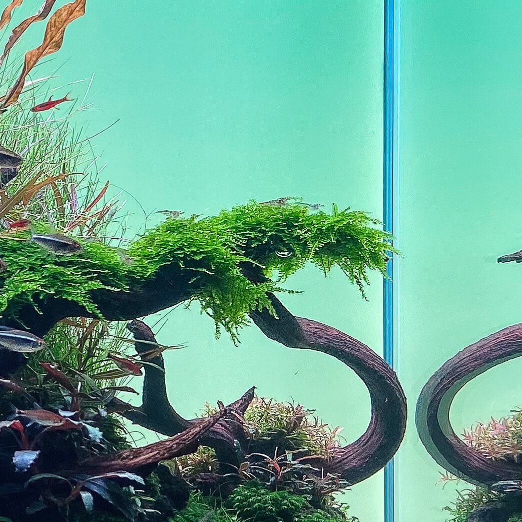 Christmasmoos ist robust und pflegeleicht; man kann das Polster bildende Wassermoos zum Begrünen von Hardscape verwenden oder als Versteckmöglichkeit in Garnelenaquarien einsetzen. Auch über Wasser kann man das ausdrucksstarke Christmasmoos in einer sehr feuchten Umgebung kultivieren – ideal eignet das tannenwedelförmige Moos für den Landteil eines Paludariums oder Aquaterrariums.