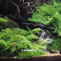 Vesicularia montagneii bildet filamentöse Matten, die sich an Steinen, Wurzeln oder Substraten festsetzen. Die filigranen Strukturen schaffen interessante Perspektiven und fördern die Tiefenwirkung im Becken. Im Aquascaping sorgt sie für natürliche Übergänge zwischen Pflanzenarrangements. Die Pflanze ist robust und bildet trotz dunkler Bereiche dichte grüne Polster, die als Versteck für kleine Aquarienbewohner dienen. Diese Eigenschaft erhöht außerdem den ökologischen Wert des Aquariums.