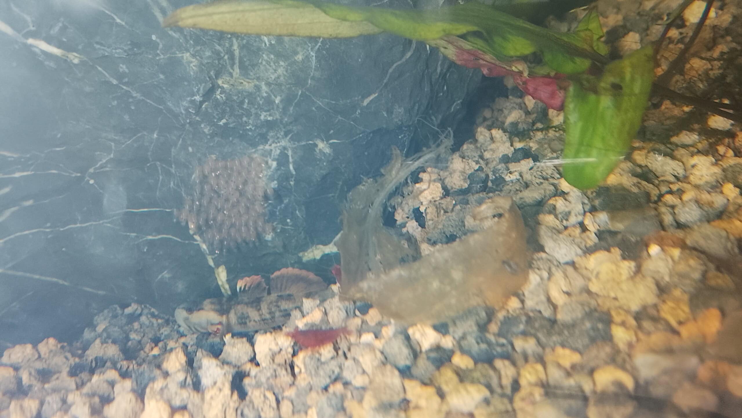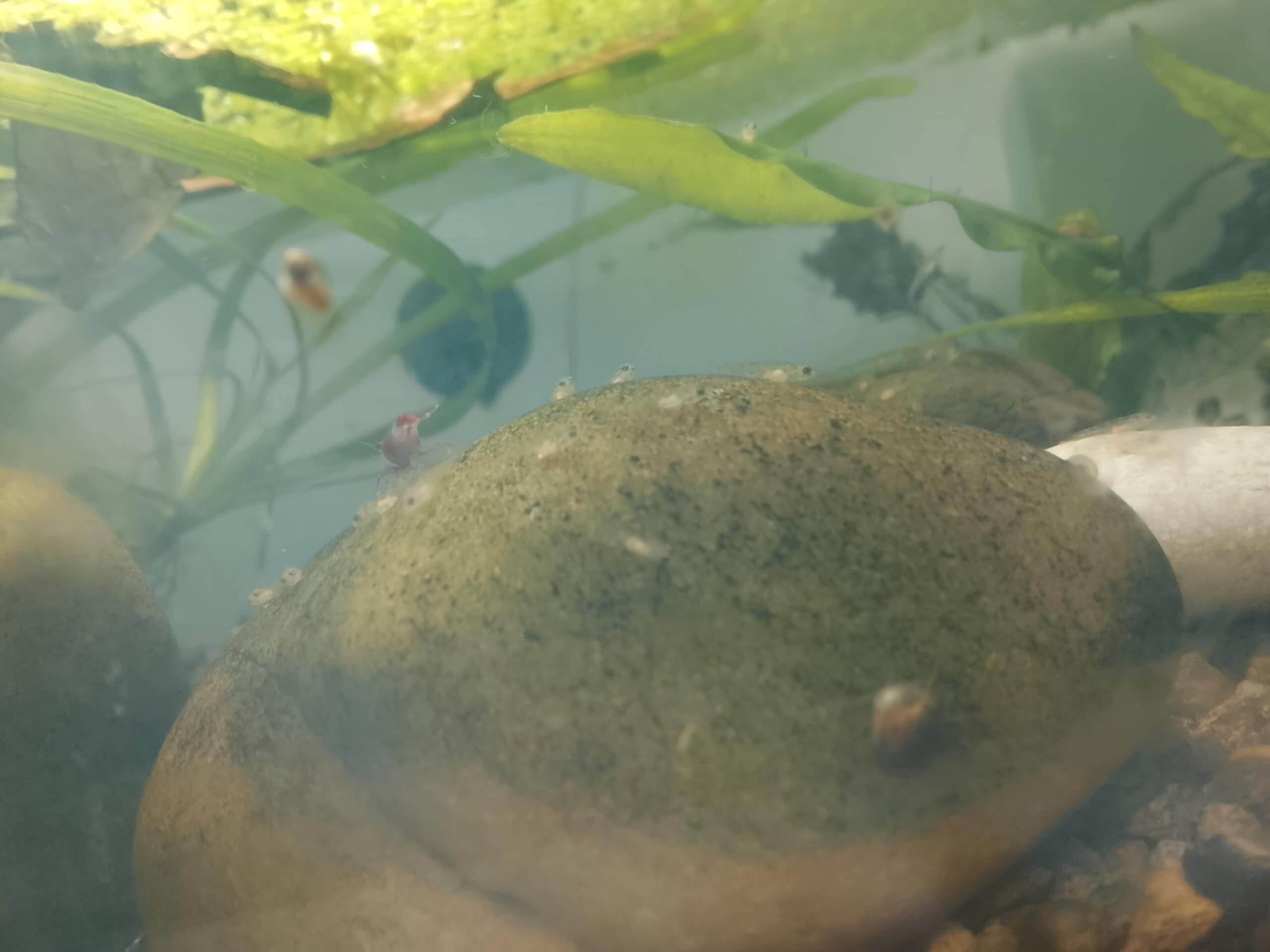 Für die Zucht nutze ich ein Becken das knapp 35l fasst. Das Becken nutzt Vulkankies und Sand als Substrat,dazu habe ich einen großen Stein mit einem glatten Boden in der Mitte und ein paar cryptocoryne und vallisnerien als Bepflanzung. Als Technik nutze ich einen kleinen Filter von Oase und eine kleine Lampe von Superfisch.
