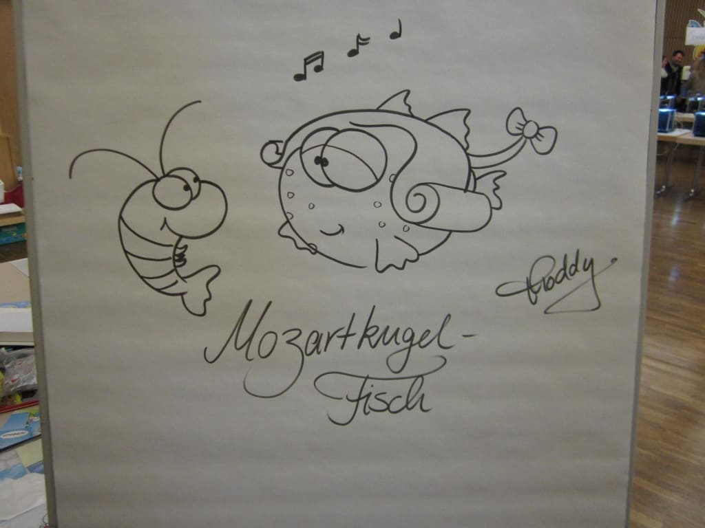Außerdem malte, signierte und zeichnete Thoddy der Autor/Illustrator der Bücher „Garnelen- Cocktail“ und „Süßwasser-Perlen“ für die Besucher was das Zeug hält!