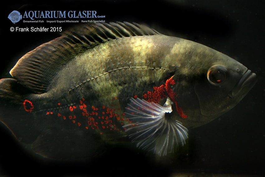 Vor einigen Monaten konnte Aquarium Glaser wieder einmal vier wundervolle, große Exemplare (18-25 cm) des Oskars aus Brasilien importieren. Die wissenschaftliche Beurteilung der verschiedenen Arten innerhalb der Gattung Astronotus ist sehr unterschiedlich, die meisten Wissenschaftler akzeptieren nur zwei Arten, nämlich A. ocellatus und A. crassipinnis. Andere glauben, dass es sehr viel mehr Arten gibt und die Gattung dringend einer wissenschaftlichen Revision unterzogen werden müsste. Sie denken, dass die vier aktuell importierten Fische zu drei verschiedenen Arten gehören und benutzen darum hier keine wissenschaftlichen Artnamen.