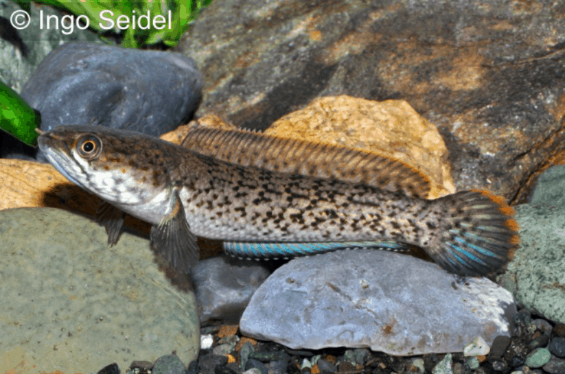 Aus Indien wurde dieser seltene Schlangenkopffisch importiert. Der Punktierte Blaue Schlangenkopf (Channa stewartii) ist in Indien und Nepal sowohl in stehenden als auch in fließenden Gewässern anzutreffen. Mit maximal nur etwa 25 cm Länge zählt diese Art zu den kleineren und dem entsprechend noch gut pflegbaren Vertretern der Gattung. Allerdings ist auch diese Art wie die meisten Schlangenköpfe revierbildend und sollte am besten im geräumigen Artaquarium gepflegt werden. Werden mehrere dieser Schlangenköpfe gemeinsam gehalten, so empfiehlt es sich, bei der Fütterung darauf zu achten, dass auch alle Tiere etwas abbekommen. Ansonsten können einzelne Fische in der Entwicklung zurück bleiben und leicht unterdrückt werden. Die Pflege kann bei 18-25 °C erfolgen.
