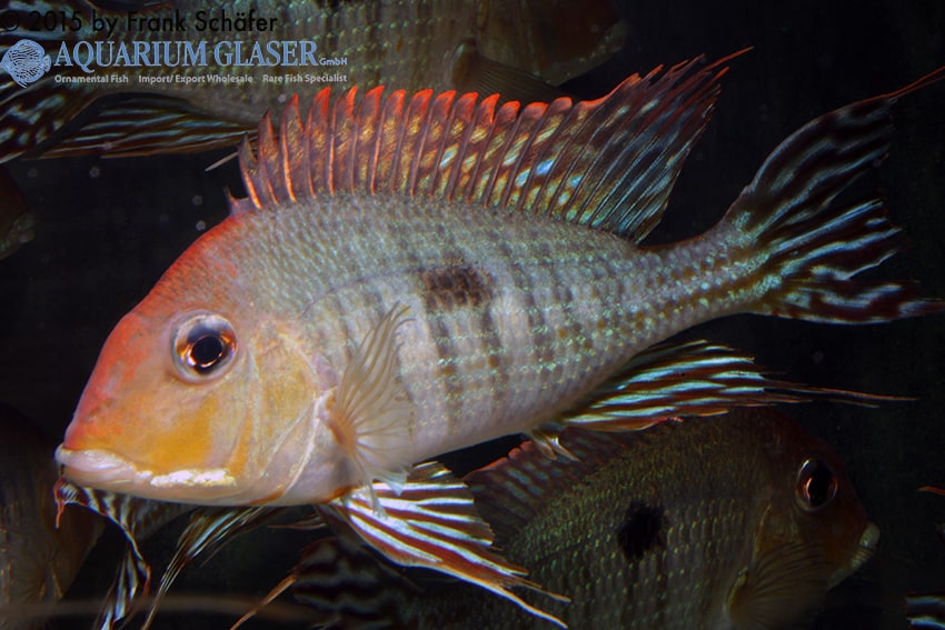 Diese Art erreicht im Gegensatz zu vielen anderen deutlich größer werdenden Erdfressern nur eine Maximallänge von etwa 16-18 cm. Man erkennt sie an ihrer intensiv roten Stirn und den bläulich gebänderten Flossen. Stammt ursprünglich aus dem Rio Tapajos in Brasilien.