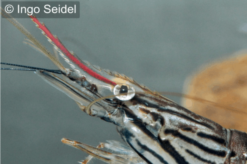 rötlich. Die Art zeigt dann auch noch attraktive schwarze Längsstreifen, die sie leider im Alter verliert. Die ursprünglich aus Thailand stammende Großarmgarnele ist ein überaus attraktives und imposantes Schautier. Eine Vergesellschaftung mit Fischen ist allerdings nicht möglich, da diese ihren Speisplan bereichern würden. Sie sollten in größeren und versteckreich eingerichteten Aquarien gepflegt werden. Die Tiere lassen sich gut mit Trocken- und Frostfutter ernähren.