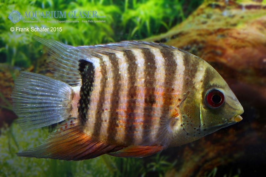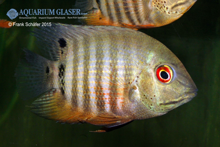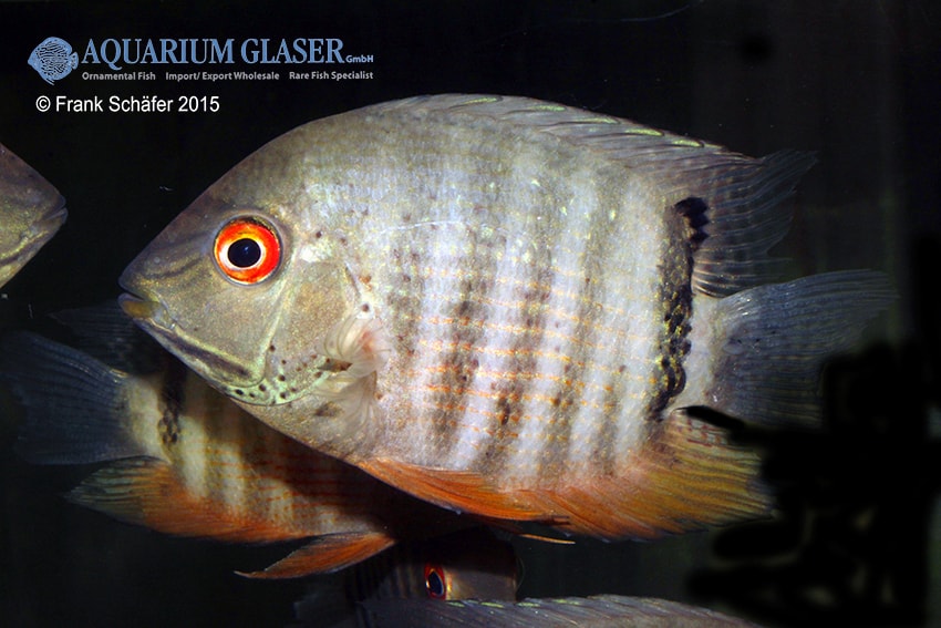 Unter allen wissenschaftlich untersuchten Exemplaren ist das Bindenmerkmal sehr konstant, wenngleich Schindler in der DCG-Info 2015: 117 auf Ausnahmen hinweist. So ist es als außergewöhnlicher Zufall zu werten, dass ausgerechnet ein H. liberifer, den Aquarium Glaser im Juni 2015 importieren konnte, ein Bindenmuster von H. severus zeigte! Das Foto ist ein echtes Zufallsdokument, denn es entstand am Importtag in unserer Anlage zu Bestimmungszwecken. Leider kann Aquarium Glaser nicht sagen, ob das Phänomen bei dem Tier nur einseitig oder auf beiden Körperseiten ausgeprägt war, es ist längst verkauft. Alle Farbmerkmale dieses Tieres entsprachen allerdings gut H. liberifer.