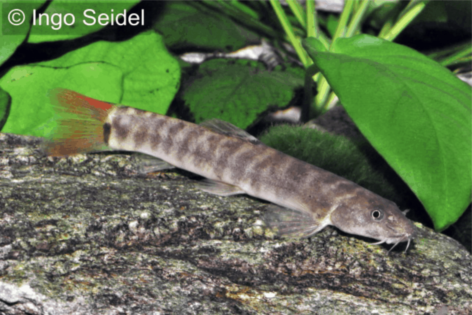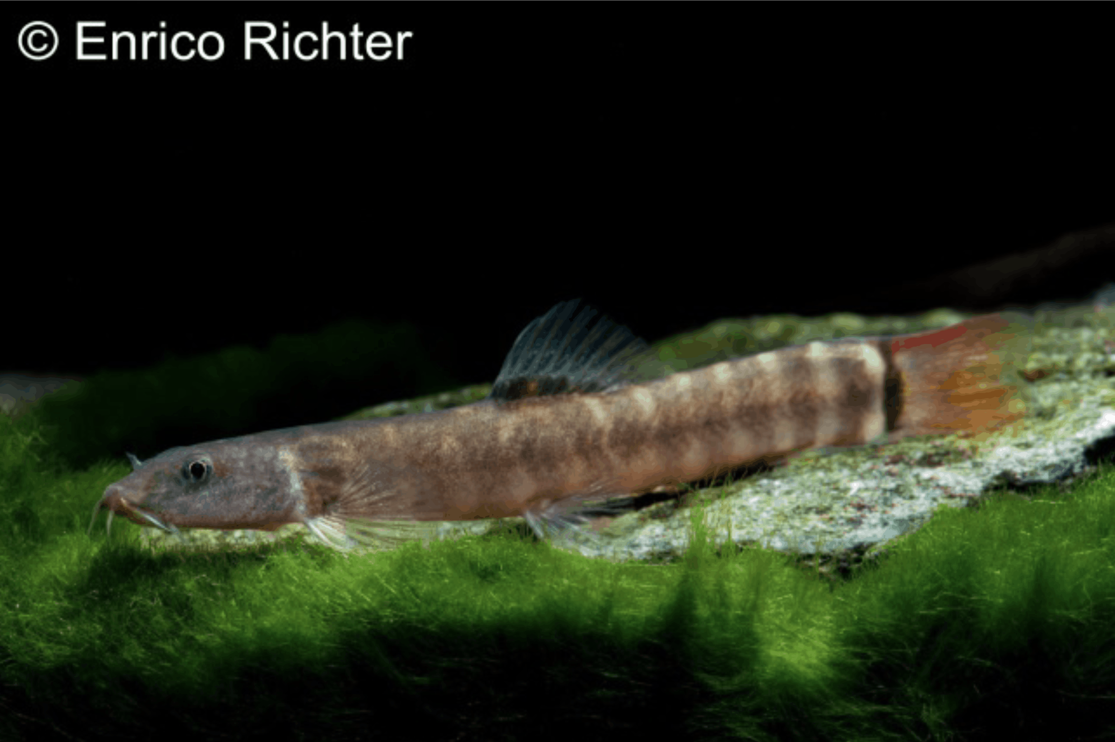 Aus Vietnam wurde diese hübsche Bachschmerle der Gattung Schistura mit roter Schwanzflosse importiert. Da es in dieser Artengruppe sehr viele beschriebene und auch noch unbeschriebene Arten gibt, war die Bestimmung ausgesprochen schwierig. Es dürfte sich bei den Importen von aqua-global allerdings um Schistura bachmaensis handeln, die im zentralen Vietnam in der Nähe der Ortschaft Hue in schnell fließenden Gewässern lebt. Die Art soll eine Länge von 6-7 cm erreichen können, so dass unsere Importe schon nahezu ausgewachsen sein dürften. Sie sollten am besten in einem kräftig gefilterten und gut strukturierten Aquarium gepflegt werden, da die Tiere Reviere bilden. Zur Pflege empfiehlt sich eine Wassertemperatur von 22-26 °C.