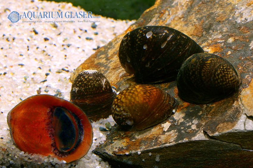 Die Red Lip Snail ist der jüngste Import aus dieser Gruppe. Es handelt sich um Neritina violacea, eine Art, die weit an Südostasiens Küsten verbreitet ist. In der Natur findet man sie vor allem in der Mangrove. Hartes Wasser mit einem pH-Wert über 8 sagen ihr also am besten zu.