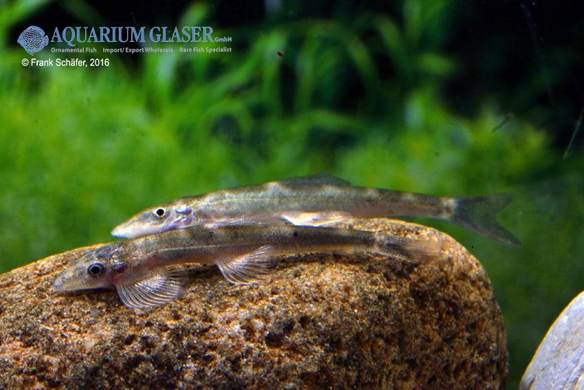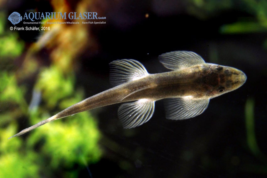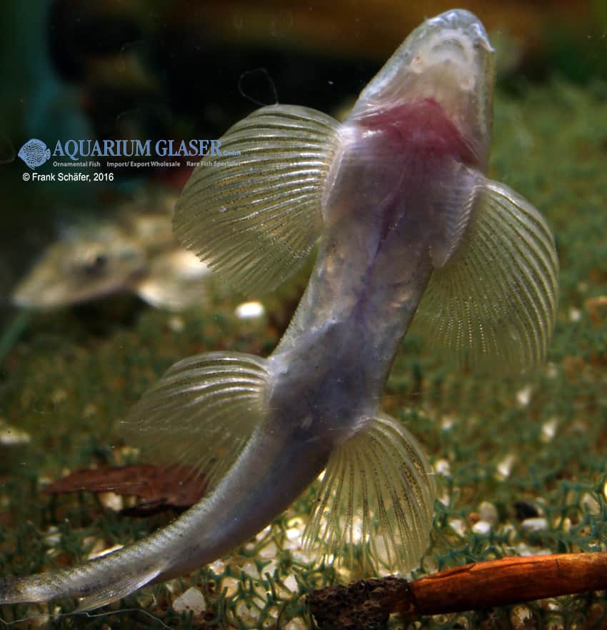 Aquaristisch besonders interessant ist, dass diese Flossensauger klein zu bleiben scheinen. Diese Exemplare sind nur ca. 4 cm lang und zumindest sexuell differenziert, die vermutlichen Männchen haben in der Draufsicht größere Brustflossen. Die sehr friedlichen Fische zeigten sich bislang bei Aquarium Glaser als völlig unkompliziert in der Pflege. Größe 4-5 cm.