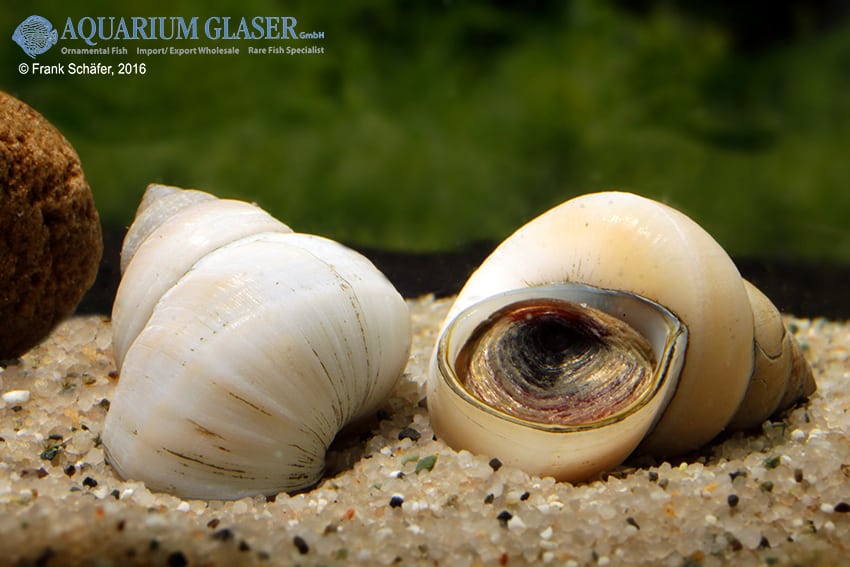 Aus Thailand konnte Aquarium Glaser nun erstmals diese interessante und schöne Sumpfdeckelschnecke importieren. Die Biologie entspricht der aller Sumpfdeckelschnecken: die Tiere atmen über Kiemen und nicht über Lungen, sind also wie Fische auf den im Wasser gelösten Sauerstoff zur Atmung angewiesen; die Schnecken sind getrennt geschlechtlich, es gibt also Männchen und Weibchen, die sich äußerlich dadurch unterscheiden lassen, dass bei den Männchen einer der beiden Fühler abweichend geformt ist; die Schnecken sind lebendgebärend; und sie sind keine Algenfresser im eigentlichen Sinne, sondern ernähren sich von Aufwuchs und Detritus. Im Aquarium haben sich Futtertabletten sehr bewährt. Filopaludina (Siamopaludina) martensi cambodjensis wird etwa 4 cm lang.