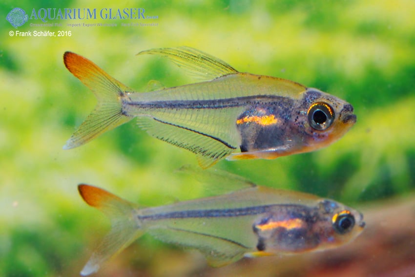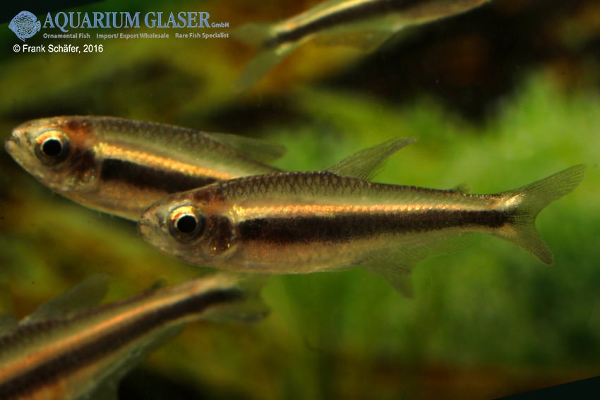 Diese kleinbleibende (ca. 4 cm) Salmlerart aus dem Mato Grosso in Brasilien ist die einzige in der Gattung Moenkhausia mit einem derartigen Farb-Muster. Das führte schon bei der Erstbeschreibung (1979) dazu, die Gattungszuordnung nur provisorisch vorzunehmen. Bis heute blieb es bei dem Provisorium. Betrachte man die netten, leider nur extrem selten erhältlichen Tiere im Aquarium, so erinnert die Schwimmweise eher an die Schwanzdrüsensalmler (Stevardiinae). Aquarium Glaser kann diesen raren Salmler wieder einmal anbieten.