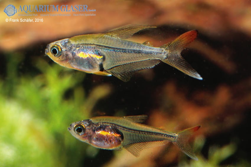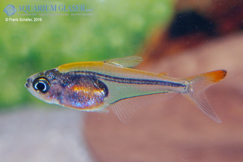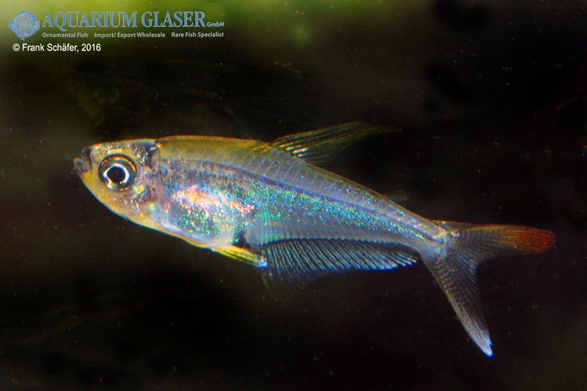 Je nach Beleuchtung schimmern die kaum 2 cm langen Juwelen blau oder sind durchsichtig. Dieser Zwergsalmler ist äußerst lebhaft und erwies sich bislang als gut haltbar.