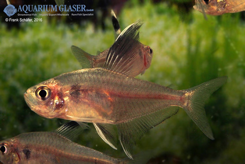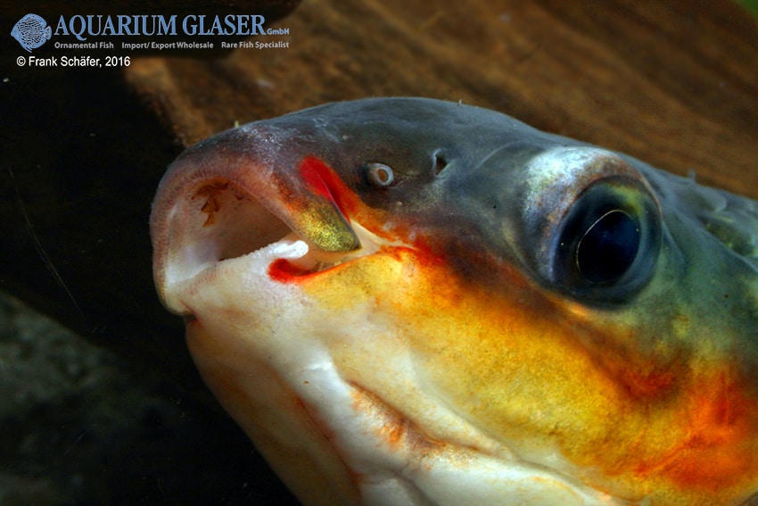 Erneut wurden diese wundervollen Großsalmler – die Art erreicht eine Gesamtlänge von 25-30 cm – aus Venezuela importiert. Die Art besiedelt den Einzug des Orinoko und des Rio Negro und ist farblich sehr variabel. Als wichtiges Artmerkmal kann der orangefarbene Punkt auf dem Kiemendeckel unterhalb des Auges gelten. Je nach Herkunft ist der Mittelstreifen als vollständiges Band oder in eine Punktreihe aufgelöst und auch die Intensität der Rotfärbung der Flossen und der Kehle variiert herkunftsbedingt erheblich.