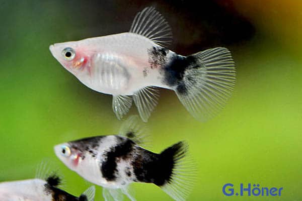 unten rechts: Xiphophorus maculatus – Korallenplaty, Panda